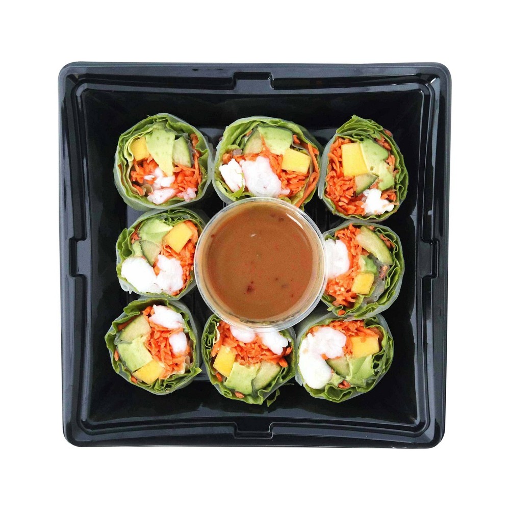CARROTS, AVOCADO, CUCUMBER, COOKED SHRIMP NIGIRI (SHRIMP, SALT.), MANGO PICKLES (MANGO, SUSHI VINEGAR (SUGAR, RICE VINEGAR, WATER, SALT, CITRIC ACID, KELP EXTRACT (KELP EXTRACT, SUGAR ALCOHOL, HYDROGENATED STARCH HYDROLYSATES, ALCOHOL, SALT, XANTHAN GUM)), CLOVER HONEY, SHICHIMI (RED PEPPER, PEEL OF MANDARIN ORANGE, SESAME SEED, GREEN LAVER)), SWEET CHILI PEANUT SAUCE (WATER, SUGAR, PEANUT BUTTER, GLUTEN FREE SOY SAUCE [WATER, SOYBEANS, SALT], LEMON CONCENTRATE JUICE, SALT, ROASTED PEANUT, SALTED SAKE [SALTED RICE WINE], SPICES, XANTHAN GUM), LETTUCE, COOKED VERMICELLI BEAN THREAD NOODLE (WATER, BEAN THREAD NOODLE (MUNG BEAN, WATER)), RICE PAPER (TAPIOCA, RICE FLOUR, FILTERED WATER, SALT), PICKLED GINGER (GINGER, WATER, SALT, SUGAR, VINEGAR), SCALLIONS.