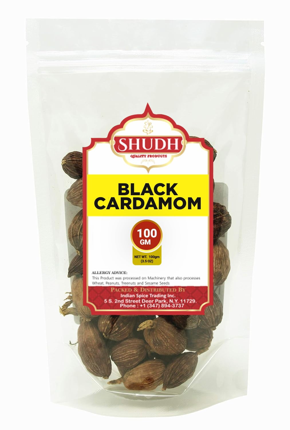 Shudh Black Cardamom Pods Whole 100 GM ~ (Amomum tsao-ko/Cao Guo/Thao Qua) ~ All Natural ~ Non-GMO Spice