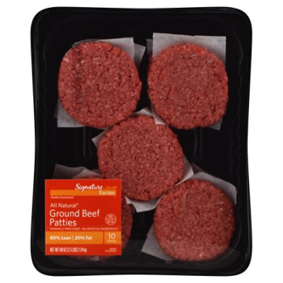 Signature Farms Beef Ground Beef Patties 80% Lean 20% Fat 8-10 Count - 2.50 Lb