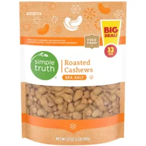 cashews, vegetable oil (peanut, cottonseed, soybean, and/or sunflower oil), sea salt, contains: cashews, processed on equipment that also processes peanuts, other tree nuts, milk, soy, wheat