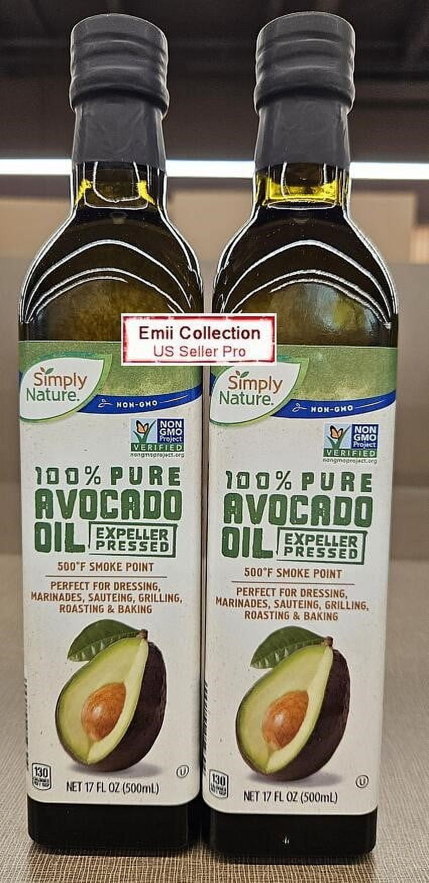 Simply Nature NON-GMO 100% Pure Avocado Oil Expeller Pressed 17fl oz (2 Bottles)