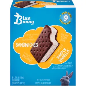 SIMPLY VANILLA FLAVORED REDUCED FAT ICE CREAM LAYERED BETWEEN TWO CHOCOLATE FLAVORED WAFERS SANDWICHES, SIMPLY VANILLA