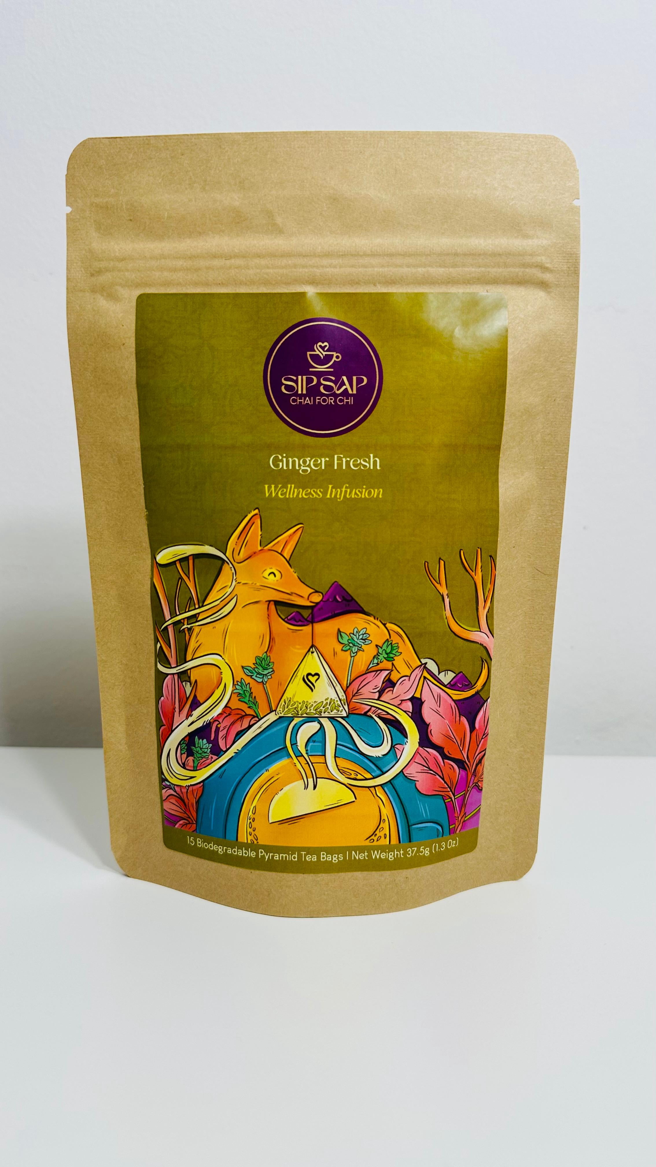 Sip Sap Ginger Fresh Tea : 15 Premium Biodegradable Pyramid Tea Bags