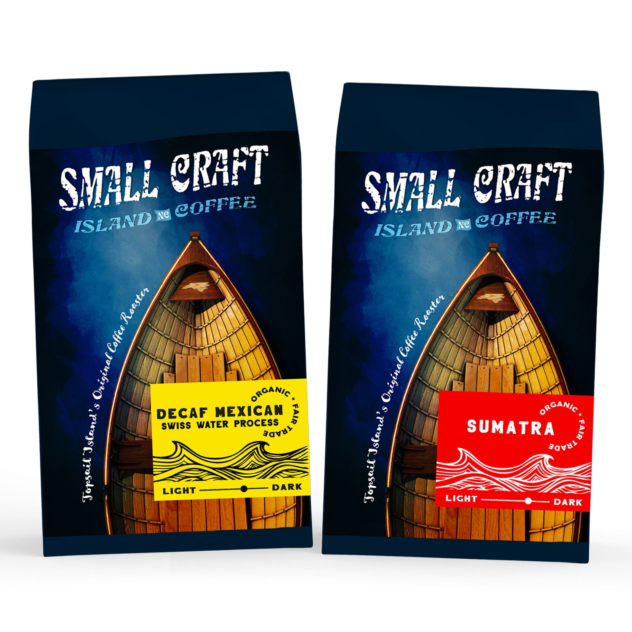 Small Craft Coffee, Half-Caf Bundle of 2 Organic Coffees, Medium-Dark Roast, Whole Bean, 8 oz ea