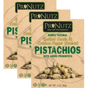Smoked Gouda & Cracked Pepper Covered Pistachios with Probiotics 3oz 3-Pack