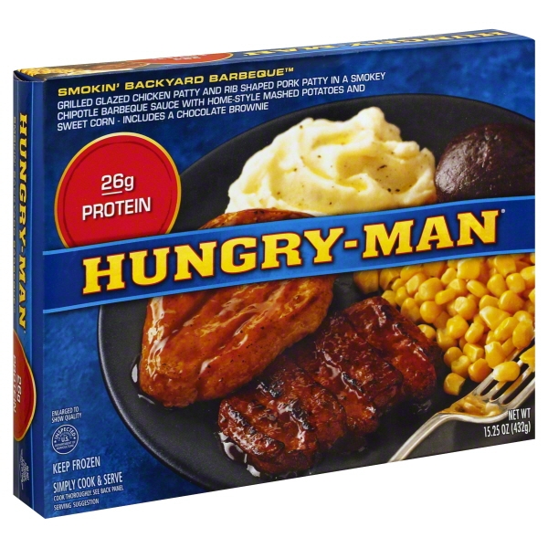 SMOKIN' BACKYARD BARBEQUE GRILLED WHITE MEAT CHICKEN PATTY AND PORK PATTY IN BBQ SAUCE WITH MASHED POTATOES, CORN AND A BROWNIE, SMOKIN' BACKYARD BARBEQUE is available at 5 retailers