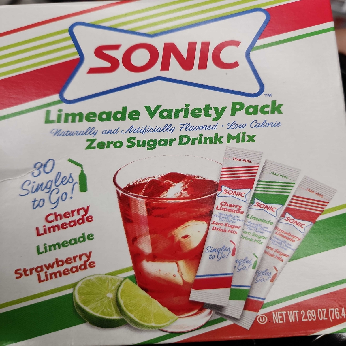 Cherry Limeade: Citric Acid, Maltodextrin, Natural And Artificial Flavors, Aspartame*, Acesulfame Potassium, Artificial Color. It contains 2% or less of the following: Magnesium oxide, salt, tricalcium phosphate, red 40, and yellow 5 Limeade: Citric Acid, Maltodextrin, Natural And Artificial Flavors, Aspartame*, Potassium Citrate. Contains 2% Or Less Of The Following: Acesulfame Potassium, Salt, Magnesium Oxide, Tricalcium Phosphate, Yellow 5 Strawberry Limeade: Citric Acid, Maltodextrin, Natural And Artificial Flavors, Aspartame*, Potassium Citrate. Contains 2% Or Less Of The Following: Acesulfame Potassium, Salt, Magnesium Oxide, Tricalcium Phosphate, Red 40, Yellow 5.