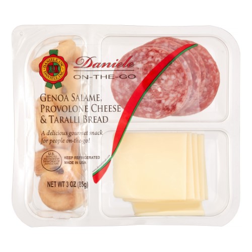 SOPRESSATA (PORK,SEA SALT, LESS THAN 2% OF: DEXTROSE, SPICES, WINE, SODIUM ERYTHORBATE, LACTIC ACID STARTER CULTURE, SODIUM NITRATE, SODIUM NITRITE, NATURAL FLAVORING); PROVOLONE CHEESE (PASTEURIZED MILK, CHEESE CULTURES, SALT, ENZYMES); TARALLI BREAD (FLOUR, WHITE WINE, SUGAR, SOYBEAN OIL, SALT, YEAST).