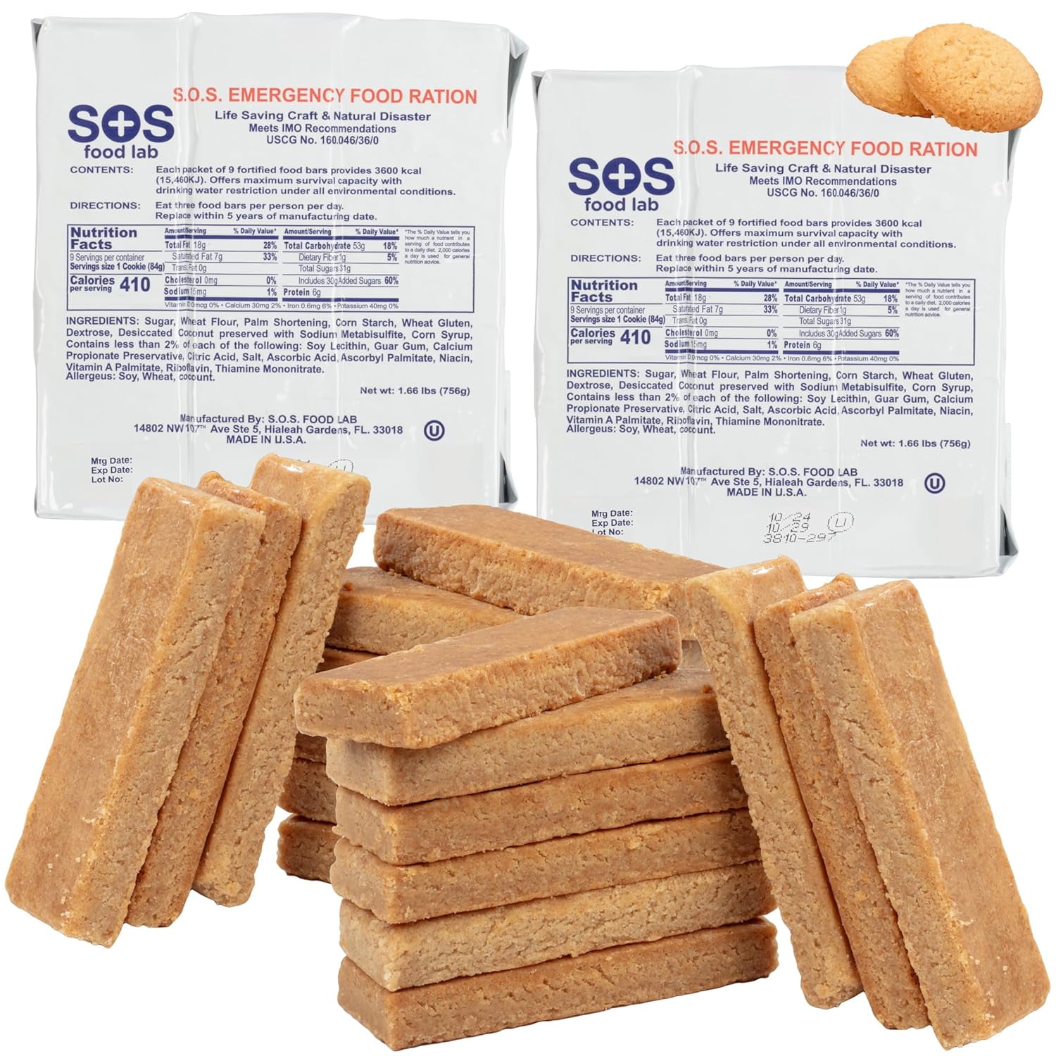 SOS Food Lab Emergency Food Bar - 3600 Calorie Ration (2 Pack Shortbread Cookie) - 3 Day/72 Hour Ready to Eat Supply for Camping, Hiking, Disaster Preparedness - 5 Year Shelf Life Energy Food