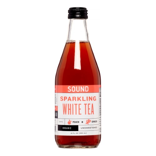 SOUND Organic Sparkling Ready to Drink White Tea, Peach & Ginger, 12 Fl Oz (Case of 12)