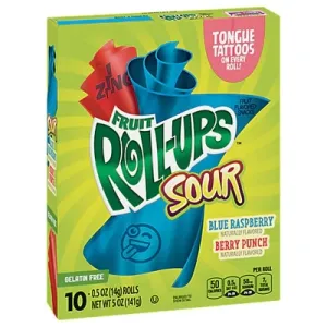 Sour Blue Raspberry and Sour Berry Punch Fruit Roll-Ups Variety Pack 10 Count