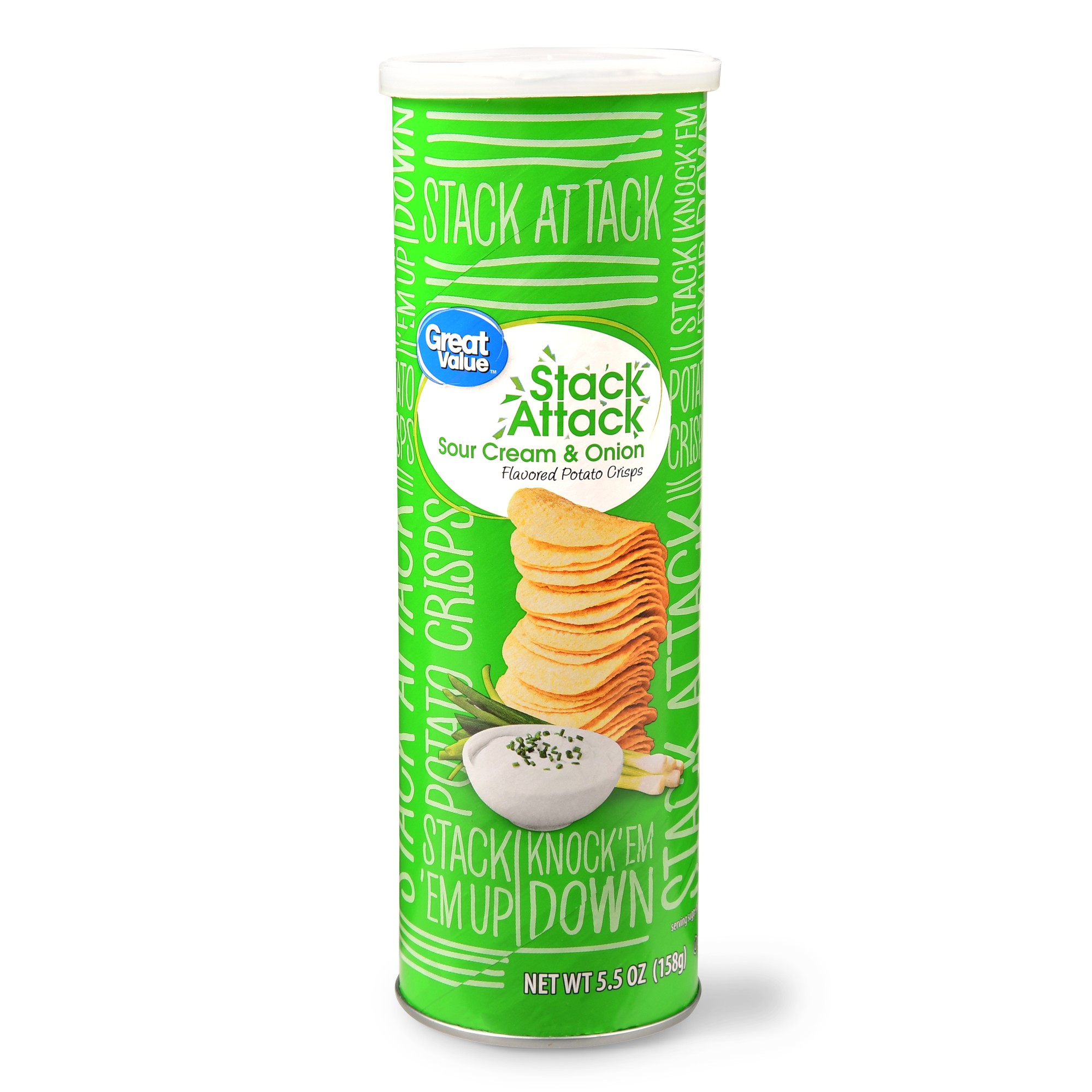 SOUR CREAM & ONION FLAVORED STACK ATTACK POTATO CRISPS, SOUR CREAM & ONION