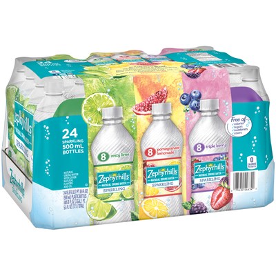 SPARKLING NATURAL SPRING WATER, ZESTY LIME, POMEGRANATE LEMONADE, TRIPLE BERRY