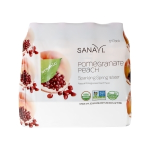 CARBONATED SPRING WATER, ORGANIC NATURAL POMEGRANATE PEACH FLAVOR.
