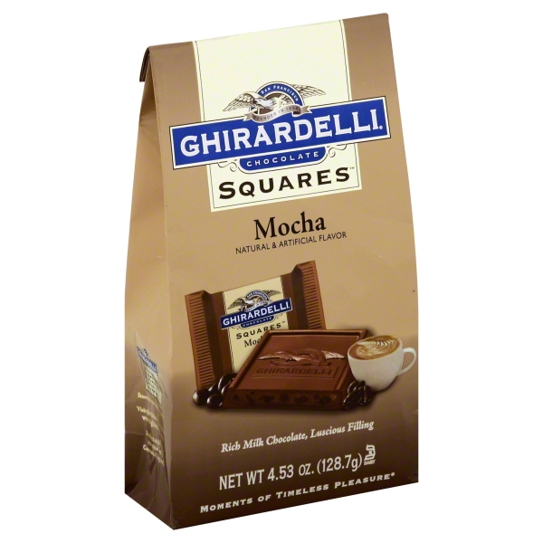 SUGAR, COCOA BUTTER, UNSWEETENED CHOCOLATE, WHOLE MILK POWDER, PALM OIL, MILK FAT, CONTAINS 2% OR LESS OF: COCOA - PROCESSED WITH ALKALI, COFFEE POWDER, RICE FLOUR, SOY LECITHIN - AN EMULSIFIER, TAPIOCA STARCH, CORN STARCH, NATURAL AND ARTIFICIAL FLAVORS, VANILLIN - ARTIFICIAL FLAVOR, HAZELNUTS, SALT, SODIUM BICARBONATE, VANILLA, SUNFLOWER OIL, CITRIC ACID AND TBHQ - AS PRESERVATIVES.