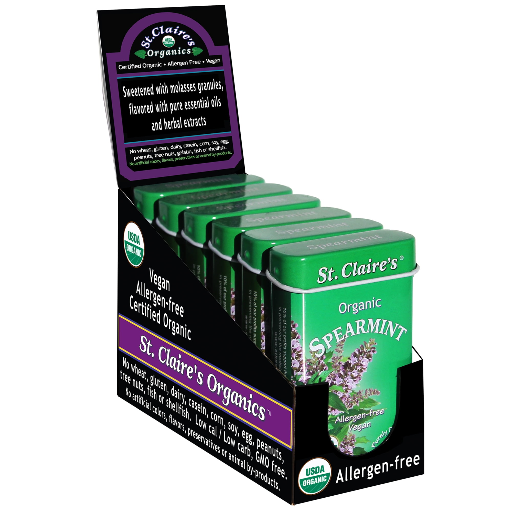 St. Claire's Organic Breath Mints, (Spearmint, 1.5 Ounce Tin, Pack of 6) | Gluten-Free, Vegan, GMO-Free, Plant-based, Allergen-Free | Made in the USA in a Dedicated Allergen-Free Facility
