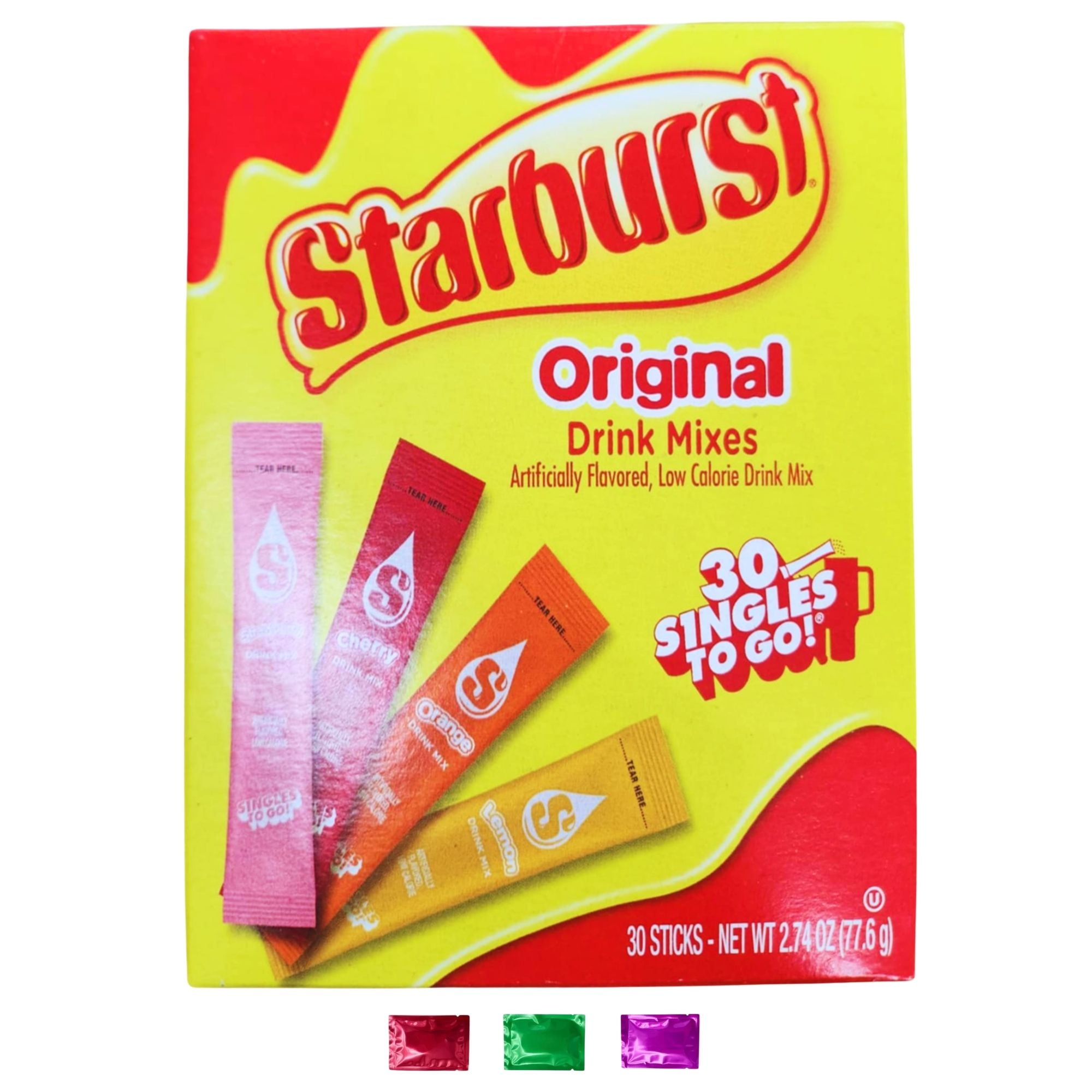 Starburst Original Drink Mix Singles 30 Sticks 1 Box, Zero Sugar Low Calorie Fruit Flavored Powdered Beverage, Beach Pool Watertok Summer Party Refreshment Packets w/ Snoep in Beperkte Oplage