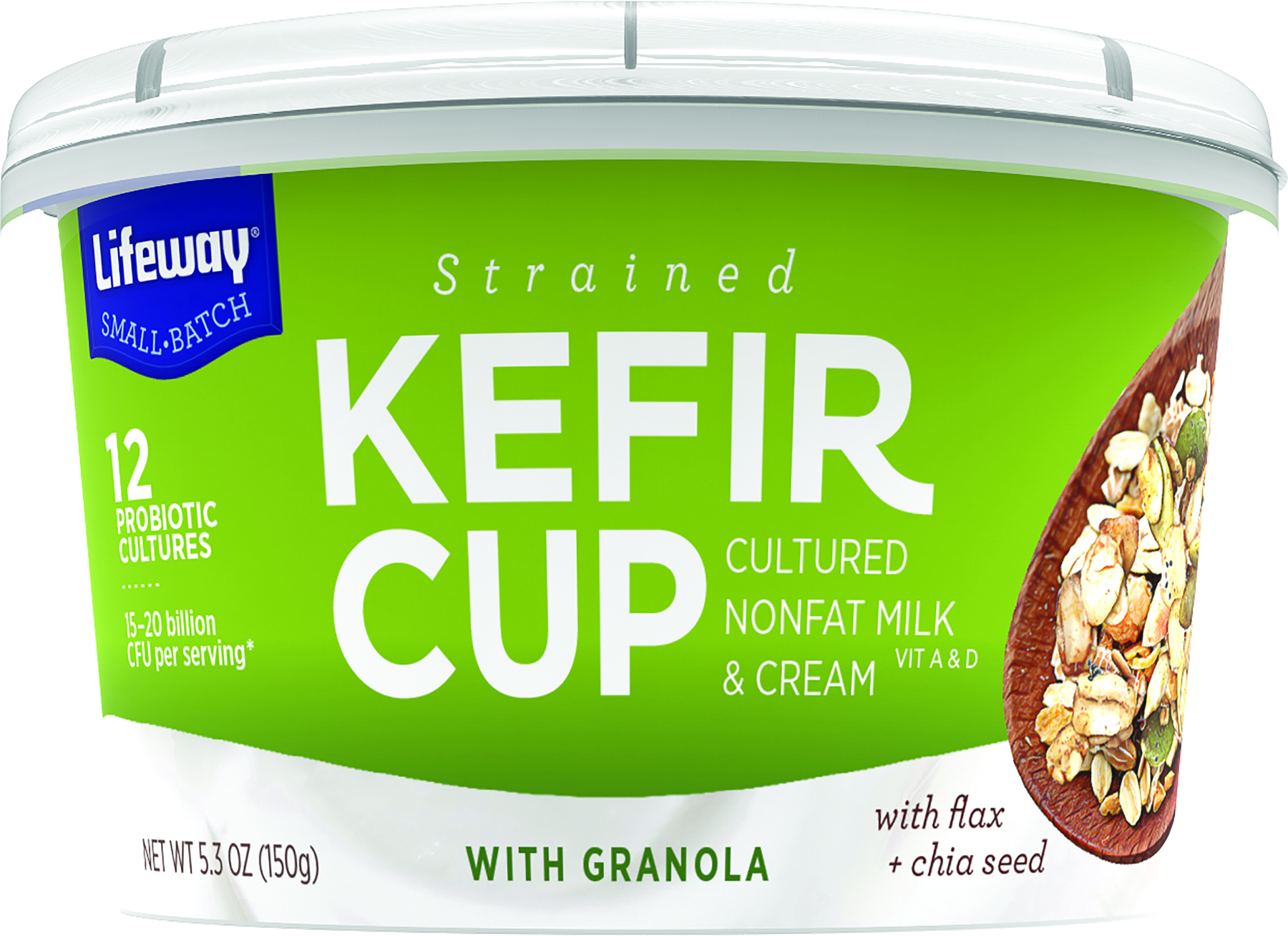 STRAINED KEFIR CUP CULTURED LOWFAT MILK VIT. A & D WITH ANCIENT GRAINS, ANCIENT GRAINS
