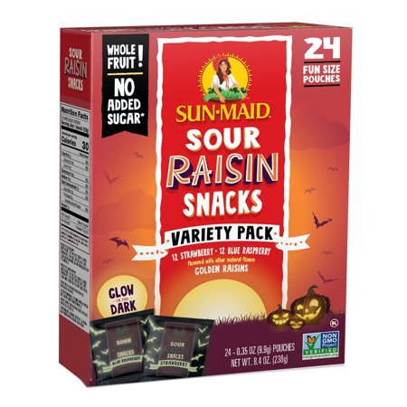 STRAWBERRY GOLDEN RAISINS, LESS THAN 2% OF NATURAL FLAVORS, SUNFLOWER OIL, CITRIC ACID, VEGETABLE JUICES (FOR COLOR), DRIED ORANGE PEEL, SULFUR DIOXIDE (SULFITES TO PRESERVE COLOR). BLUE RASPBERRY GOLDEN RAISINS, LESS THAN 2% OF: NATURAL FLAVORS, SUNFLOWER OIL, CITRIC ACID, VEGETABLE JUICES (FOR COLOR), SULFUR DIOXIDE (SULFITES TO PRESERVE COLOR).