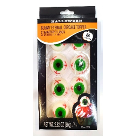 STRAWBERRY HALLOWEEN GUMMY EYEBALL CUPCAKE TOPPER, STRAWBERRY