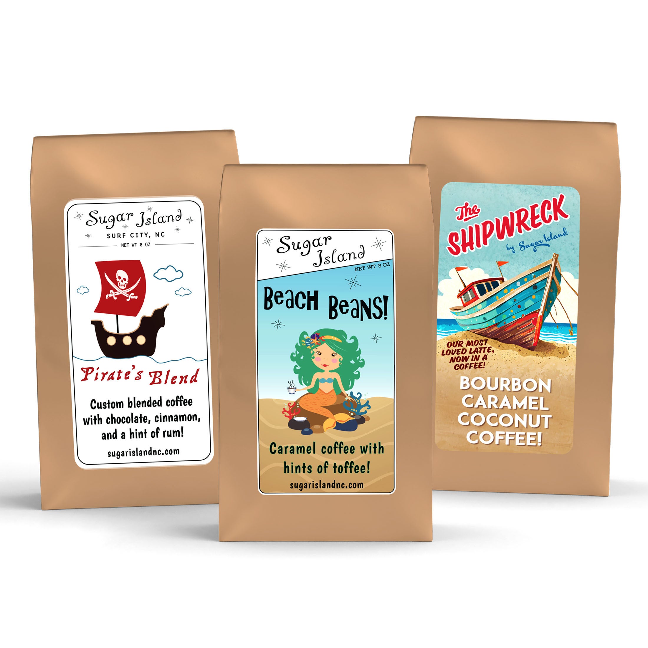 Sugar Island’s Flavored Specialty Arabica Coffees, Beach Bundle of 3, Medium Roast, Ground, 8oz is available at 1 retailer