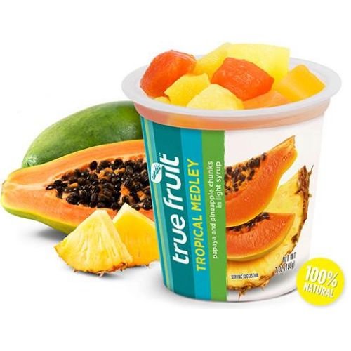 SUNDIA, TRUE FRUIT, TROPICAL MEDLEY, PAPAYA AND PINEAPPLE CHUNKS IN LIGHT SYRUP