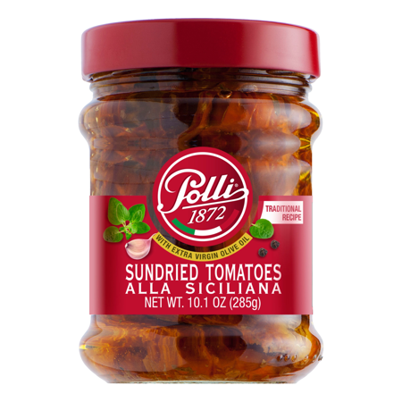 REHYDRATED SUNDRIED TOMATOES, SUNFLOWER OIL, EXTRA VIRGIN OLIVE OIL, SALT, SUGAR, GARLIC, OREGANO, CITRIC ACID, ASCORBIC ACID, BLACK PEPPER.
