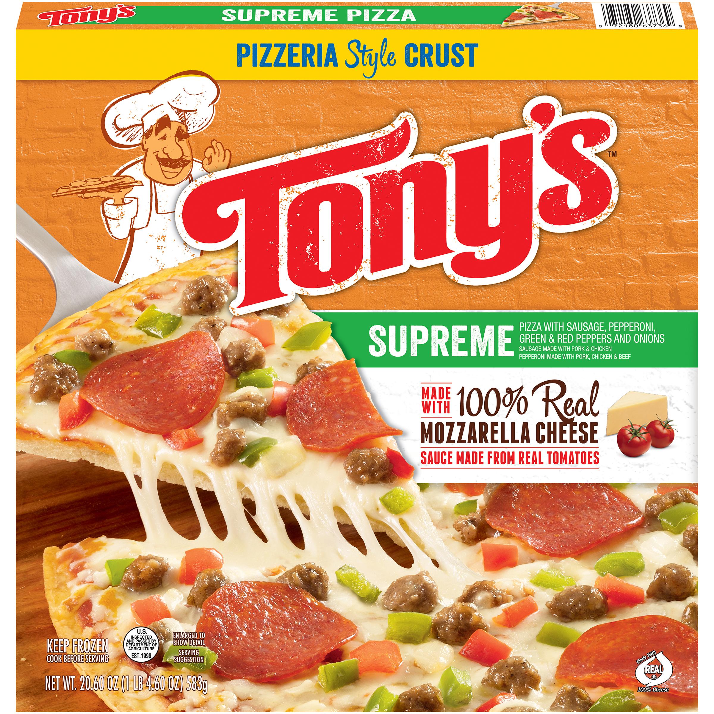SUPREME WITH SAUSAGE, PEPPERONI, GREEN & RED PEPPERS AND ONIONS PIZZERIA STYLE CRUST PIZZA, SUPREME