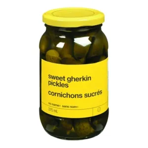 Cucumbers, Sugar, Water, White Vinegar, Salt, Calcium Chloride, Spices, Polysorbate 80, Spice Extract, Colour (Contains Tartrazine)