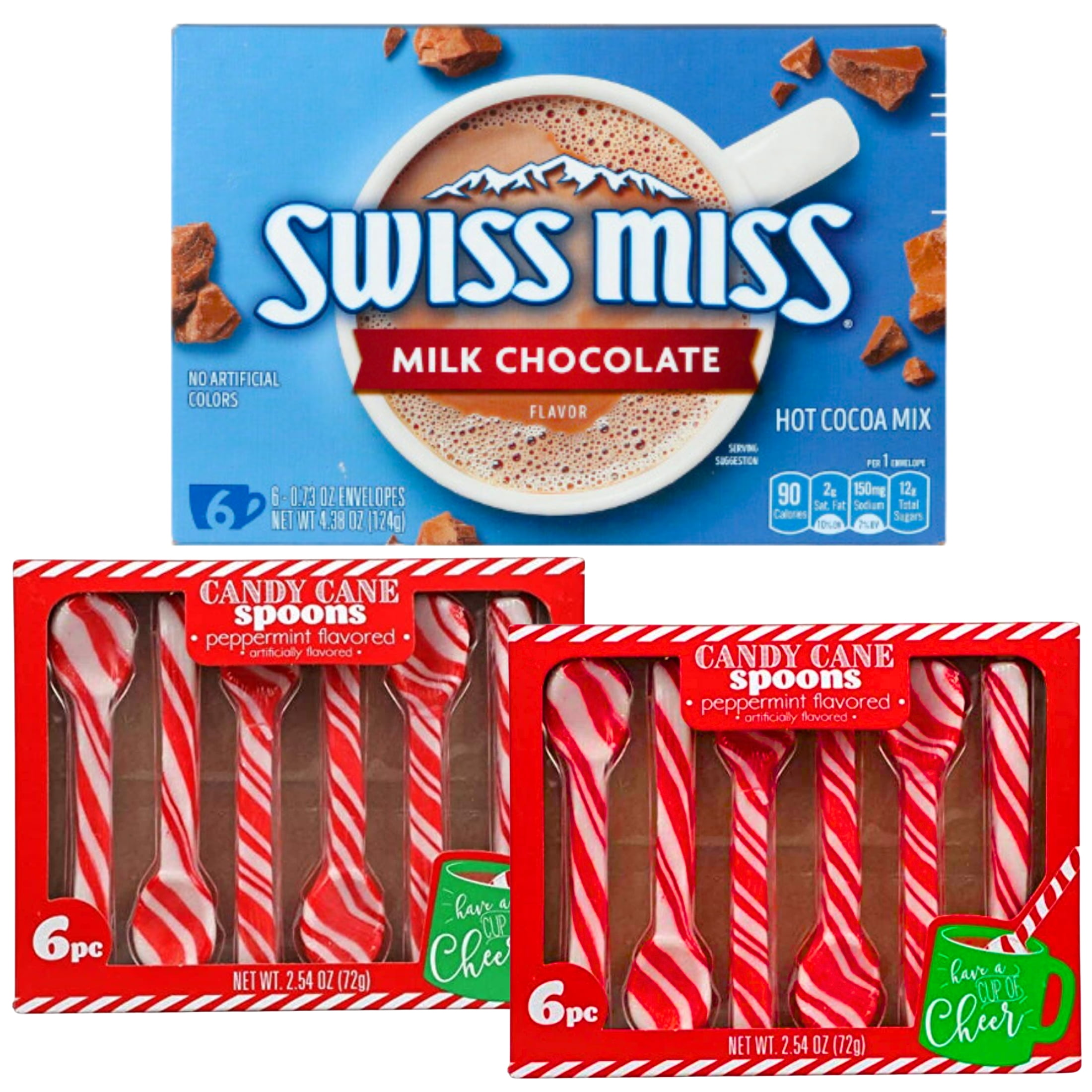 Swiss Miss Milk Chocolate Hot Cocoa Mix 6Cts Edible Candy Cane Peppermint Flavored Spoon 12Cts Party Favor Snacks Bulk Christmas Flavors Goody Filler Stocking Stuffers Box of 3