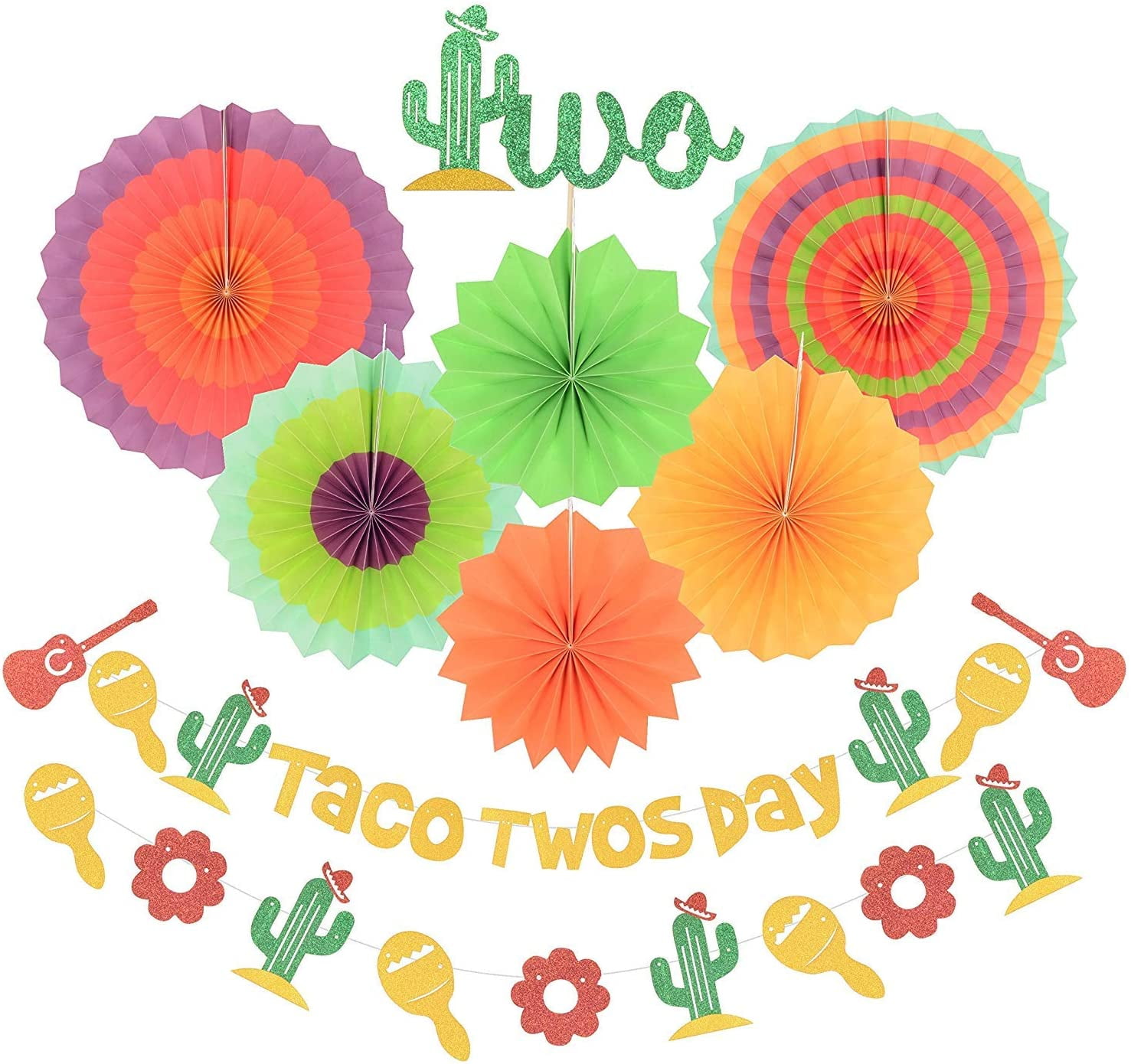 Taco TWOsday Birthday Decoration Taco Twosday Cactus Party Decorations, Gold Glittery Two Cake Topper, Mexican Fiesta Themed Second Birthday Party Decorations, Cinco de Mayo, 2nd Birthday Supplies
