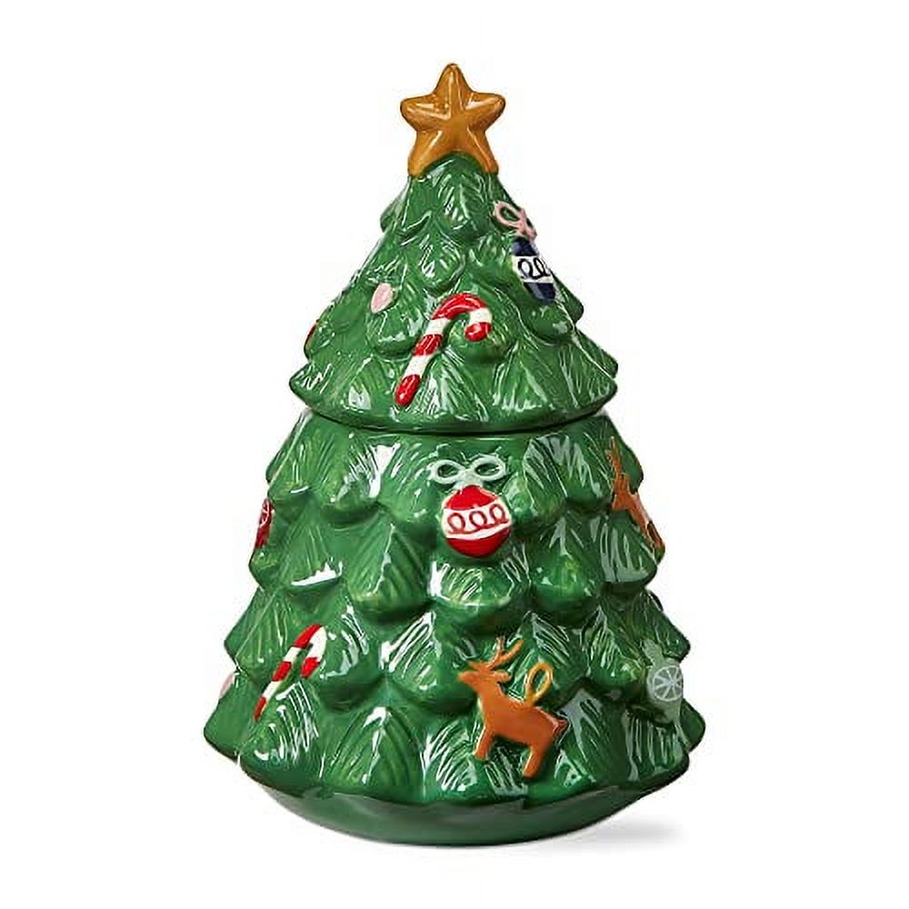 tag Green Christmas Tree Shaped Stoneware Cookie Jar, 6.6"L x 6.6"W x 10.0"H, 40 oz. Green