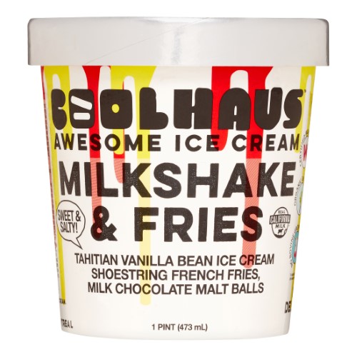 TAHITIAN VANILLA BEAN ICE CREAM WITH SHOESTRING FRENCH FRIES AND MILK CHOCOLATE MALT PIECES, MILKSHAKE & FRIES