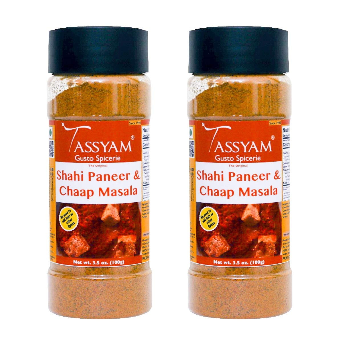 Tassyam Shahi Paneer & Chaap Masala 200g (100g x2) | Dispenser Bottle, All Natural, Flavour Burst