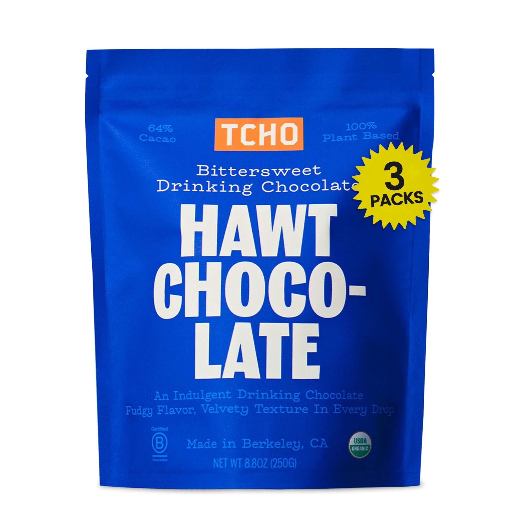 TCHO Hawt Chocolate Drinking Chocolate (3 Pack) | 100% Plant Based, Vegan Friendly, Kosher, Non-GMO, Non-Dairy, No Artificial Sweeteners, Fair Trade Certified | 8.8oz each