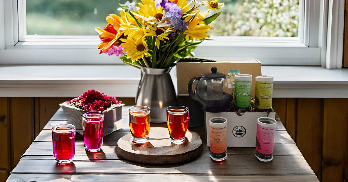 Tea Gift Set + 1 Tea Pot Infused Tea Set. The Unforgettable Gift for Tea Lovers! Contain 4 Assorted Teas: Ginger Turmeric Herbal, Black Tea, Green Jasmine, Hibiscus, Herbal, Zest