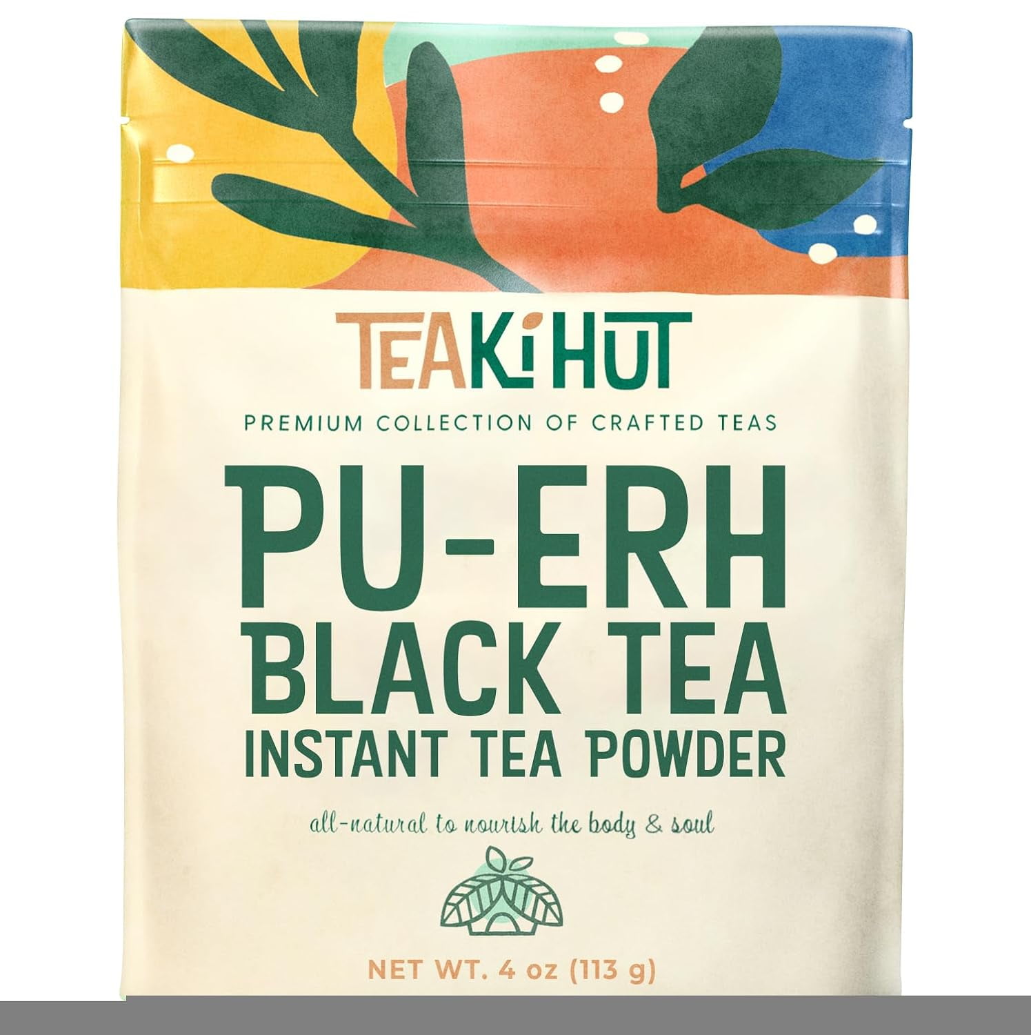 TEAki Hut Instant Pu-Erh Tea Powder, Instant Tea Concentrate, Energy Drink Mix, Hot or Cold, 113 Servings