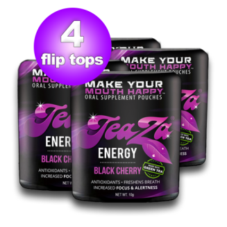Teaza Black Cherry Herbal Energy Pouch Flip Top 4 Pack