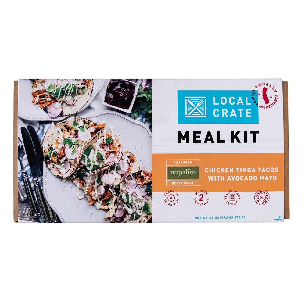 TENDER, FRESH HOMEMADE CHICKEN TINGA TACOS TOPPED WITH TANGY MEXICAN CEBOLLA AND DRIZZLED WITH AVOCADO MAYO MEAL KIT, CHICKEN TINGA TACOS WITH AVOCADO MAYO