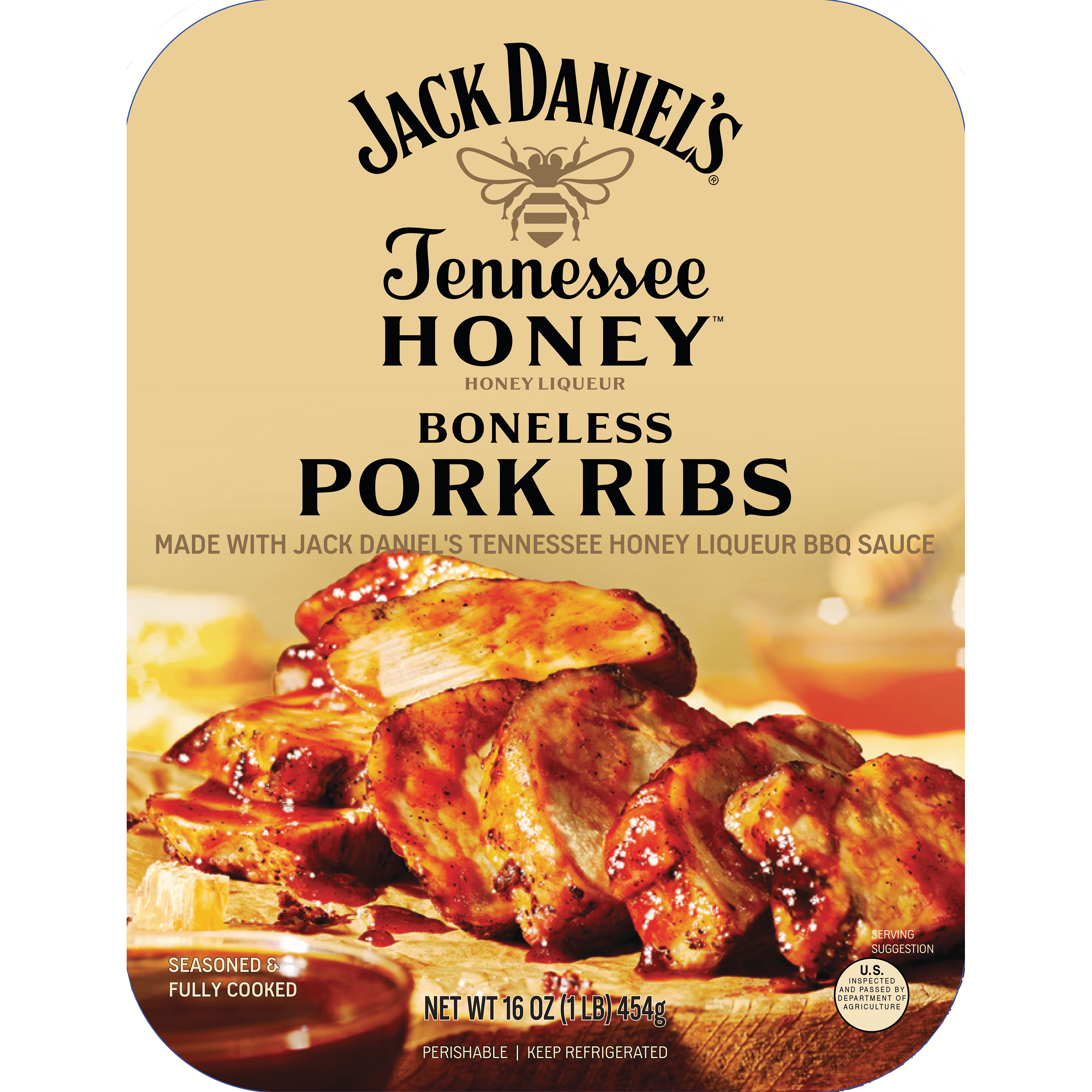 TENNESSEE HONEY SEASONED & FULLY COOKED BONELESS PORK RIBS WITH HONEY LIQUEUR BBQ SAUCE, TENNESSEE HONEY