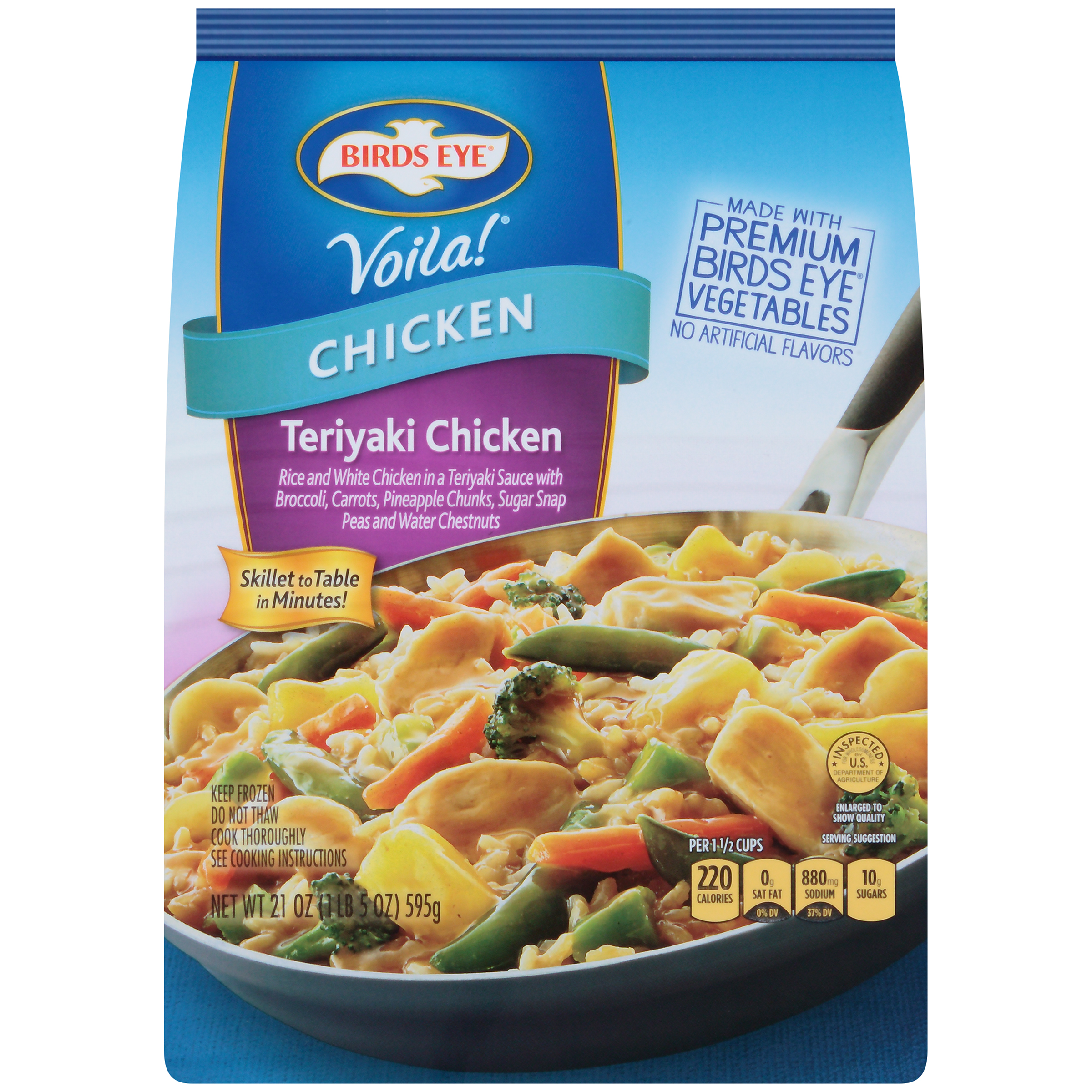 Vegetables (Broccoli, Carrots, Sugar Snap Peas, Water Chestnuts), Sauce (Water, Soy Sauce (Water, Wheat, Soybeans, Salt), Sugar, Soy Sauce (Water, Soybeans, Wheat, Salt), Modified Food Starch, Sesame Oil, Ginger Puree (Ginger, High Fructose Corn Syrup), Chicken Base (Chicken Meat Including Chicken Juices, Maltodextrin, Chicken Fat, Hydrolyzed Corn Protein, Salt, Sugar, Dried Whey, Onion Powder, Spice Extractives, Turmeric), Garlic, Spices, Xanthan Gum), Cooked Rice (Water, Rice), Cooked White Chicken Meat (White Chicken Meat, Water, Isolated Soy Protein Product (Isolated Soy Protein, Modified Food Starch, Corn Starch, Carrageenan, Soy Lecithin), Salt, Sodium Phosphates, Carrageenan), Fruit (Pineapple Tidbits)