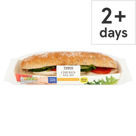 Wheat Flour (Wheat Flour, Calcium Carbonate, Iron, Niacin, Thiamin), Chicken Breast, Water, Tomato, Cucumber, Rapeseed Oil, Lettuce, Brown Linseed, Golden Linseed, Millet Seeds, Poppy Seeds, Cornflour, Salt, Sugar, Lemon Juice, White Wine Vinegar, Pasteurised Egg Yolk, Yeast, Dried Wheat Gluten, Malted Barley Flour, Dried Whole Milk, Palm Oil, Black Pepper, Emulsifiers (Mono- And Di-glycerides Of Fatty Acids, Mono- And Di-acetyl Tartaric Acid Esters Of Mono- And Di-glycerides Of Fatty Acids, Calcium Salts Of Fatty Acids), Mustard Flour, Garlic Powder, Flour Treatment Agent (Ascorbic Acid), Wheat Starch, Sunflower Oil