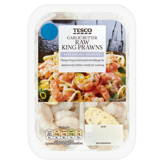 King Prawn (Crustacean), Butter (Milk), Salt, Flat Leaf Parsley, Garlic Puree, Roasted Garlic Puree, Cornflour, Concentrated Lemon Juice, Black Pepper