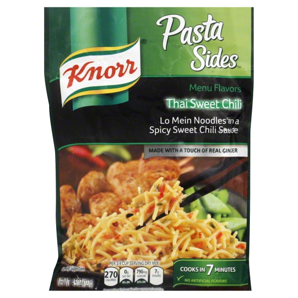 ENRICHED MACARONI PRODUCT [SEMOLINA AND DURUM FLOUR (WHEAT), NIACIN, FERROUS SULFATE (IRON), THIAMIN MONONITRATE (VITAMIN B1), RIBOFLAVIN (VITAMIN B2), FOLIC ACID], SUGAR, MALTODEXTRIN, MODIFIED CORN STARCH, SALT, SESAME OIL*, VINEGAR*, CARROTS*, GARLIC POWDER, GINGER*, ONION POWDER, ONION*, SOY SAUCE* (FERMENTED SOYBEANS, WHEAT, SALT), CRUSHED RED CHILI PEPPER*, PAPRIKA OLEORESIN (FOR COLOR), NATURAL FLAVOR, SOY LECITHIN.