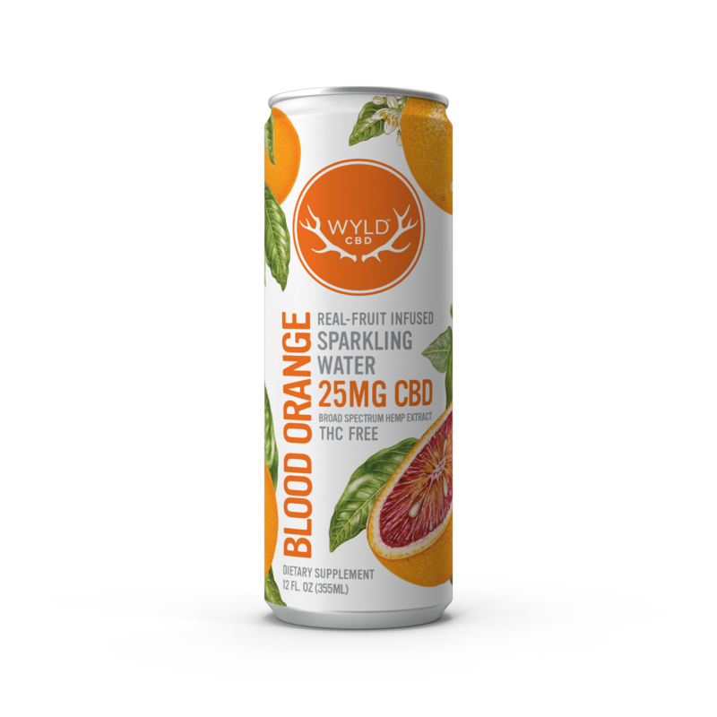 THC FREE BLOOD ORANGE BROAD SPECTRUM HEMP EXTRACT CBD 25 MG REAL - FRUIT INFUSED SPARKLING WATER, BLOOD ORANGE