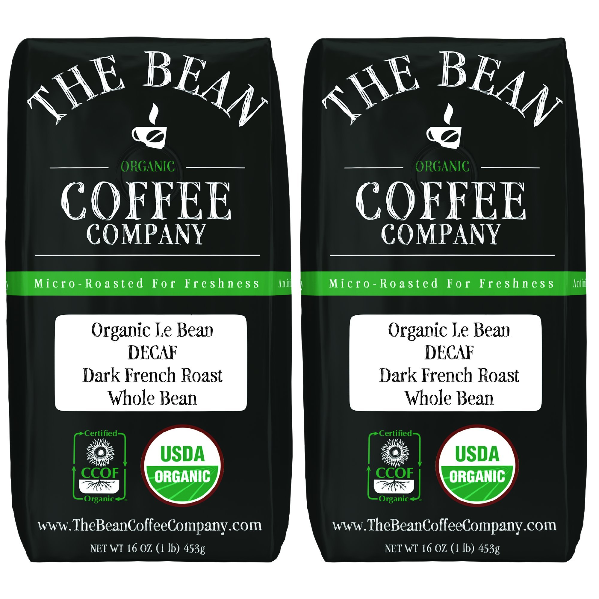 The Bean Coffee Company Organic Decaf Le Bean, Dark French Roast, Whole Bean, 16-Ounce Bags (Pack of 2)