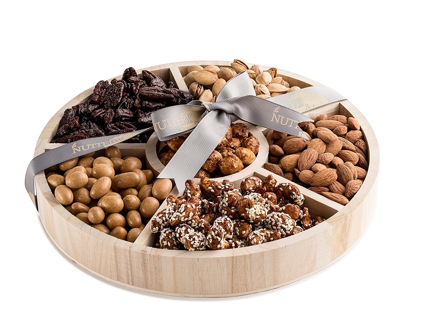 The Nuttery Classic Holiday Wooden 6 Section Round Nuts Gift Tray -Small