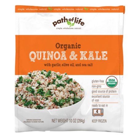 ORGANIC QUINOA (WATER, ORGANIC WHITE QUINOA, ORGANIC RED QUINOA), ORGANIC KALE, ORGANIC GARLIC, OLIVE OIL, SALT, BLACK PEPPER.