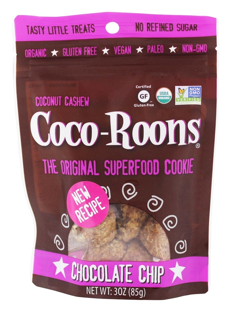 DRIED UNSWEETENED COCONUT*, CASHEW FLOUR*, COCONUT NECTAR*, MAPLE SYRUP*, CHOCOLATE CHIPS (CACAO BEANS) *, VANILLA EXTRACT*, EXTRA VIRGIN COCONUT OIL*, HIMALAYAN CRYSTAL SALT.