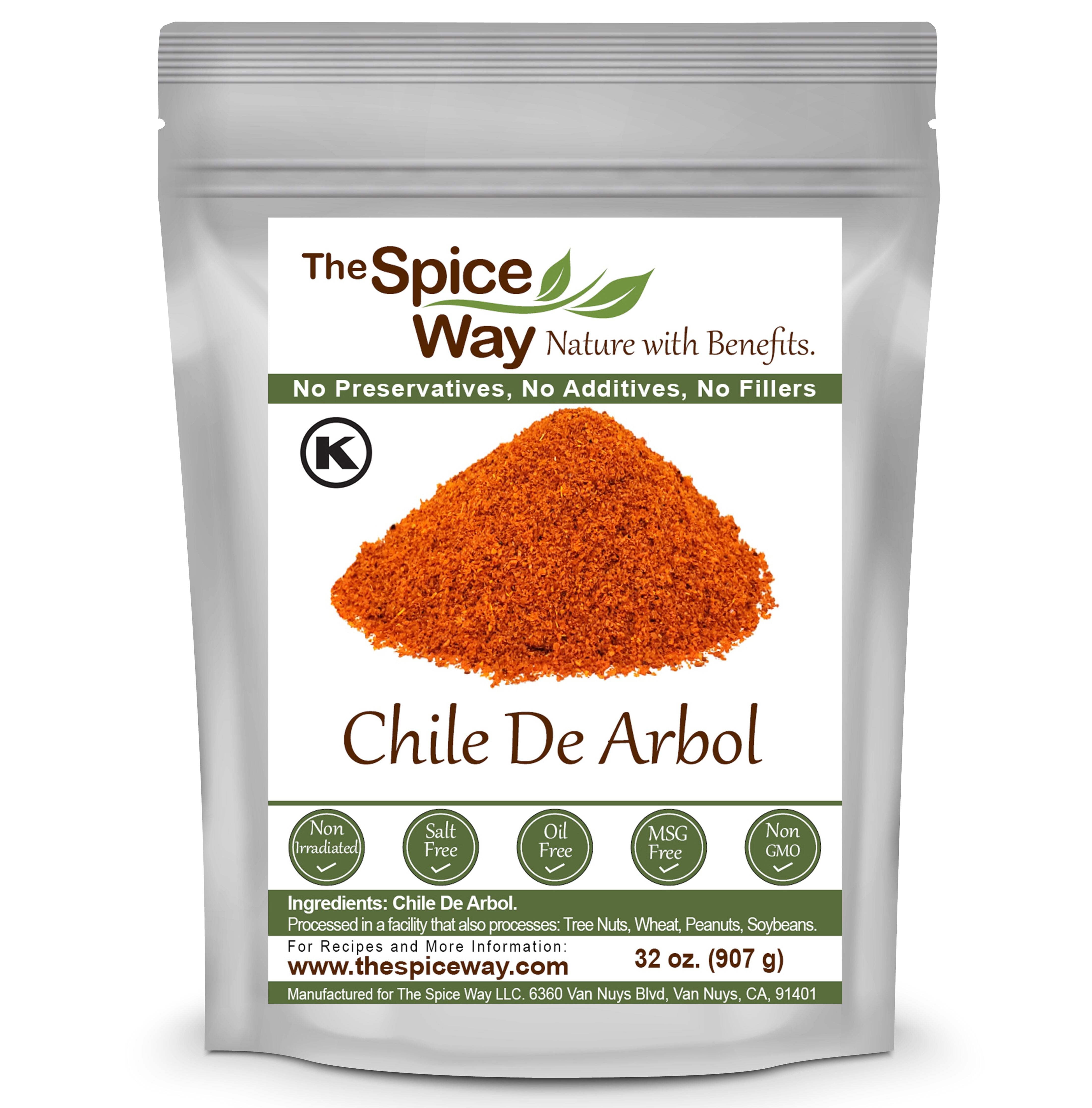 The Spice Way Chile De Arbol Powder - Central American cuisine – All Natural - Resealable Pouch - 32 Oz.